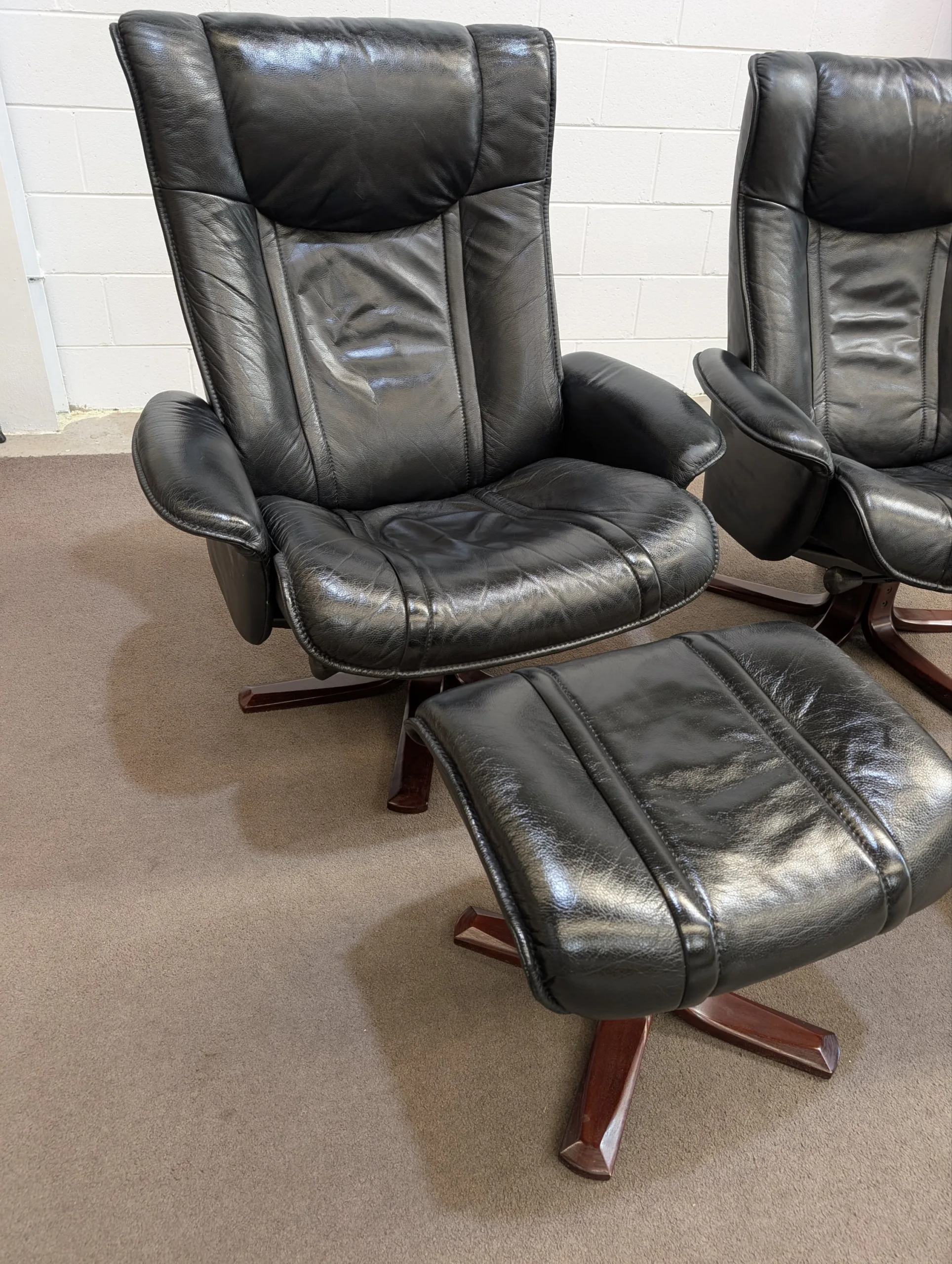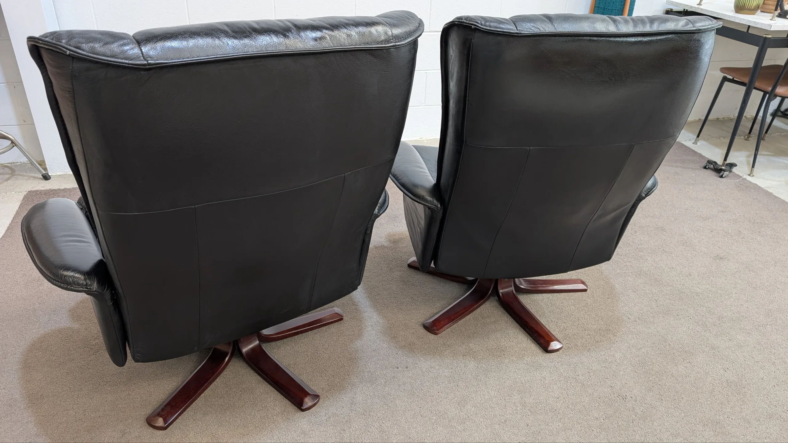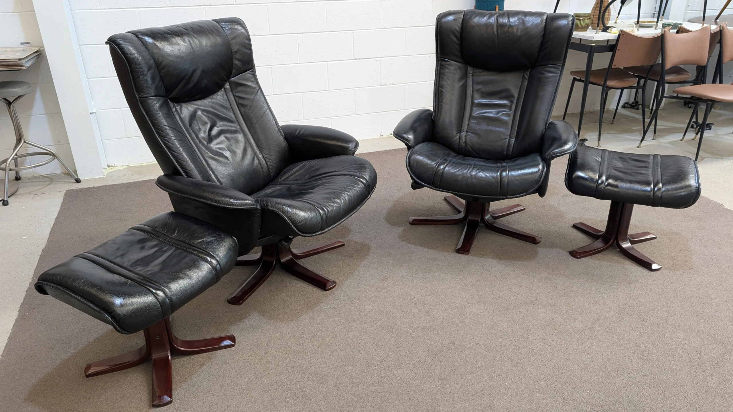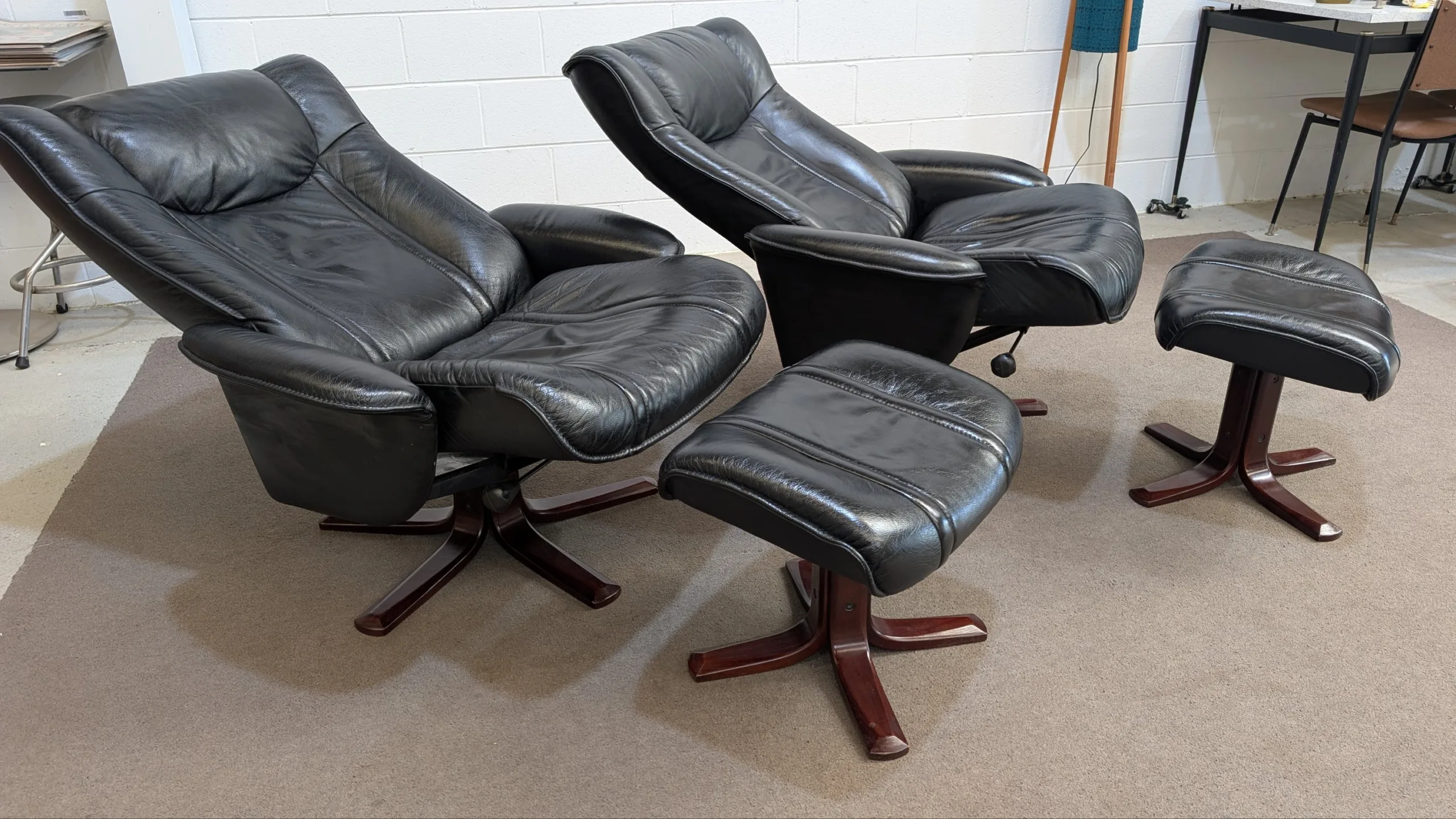 Leather Recliner and Footstool by IMG in good solid condition. Everything works as it should. Quality build as expected from the maker. Recliner works easily. Great colour. Leather cleaned and conditioned. Price per unit, two available.