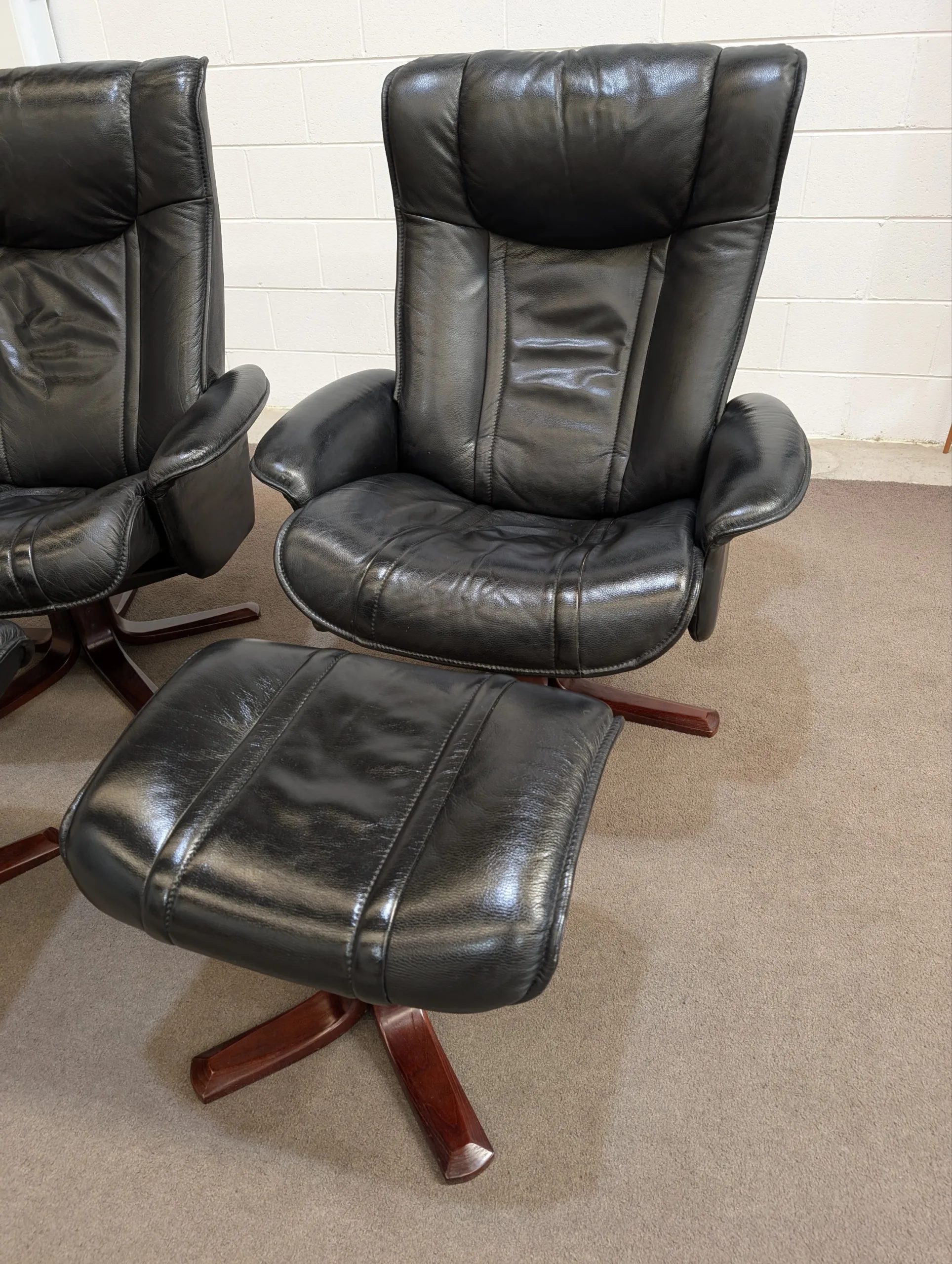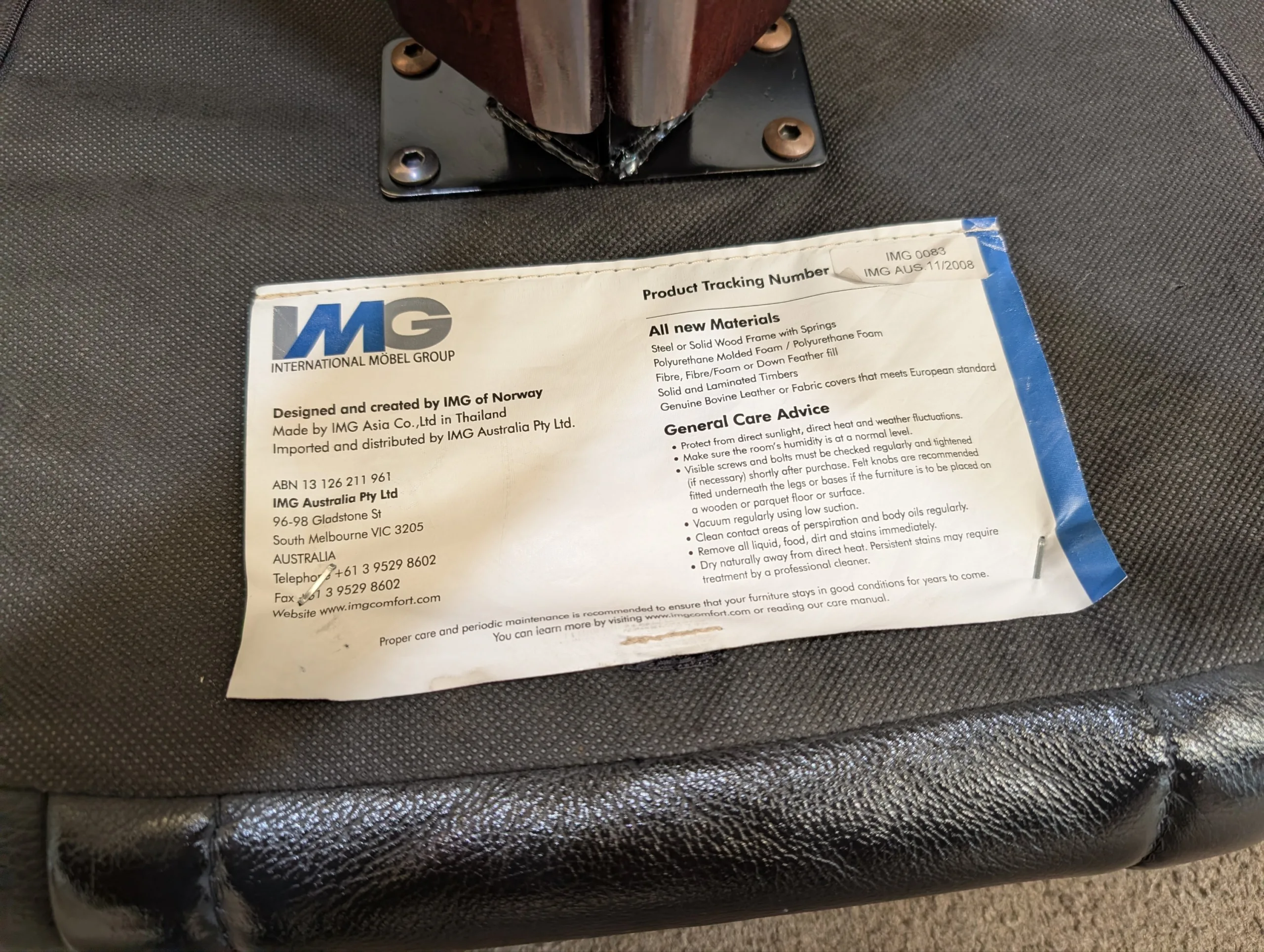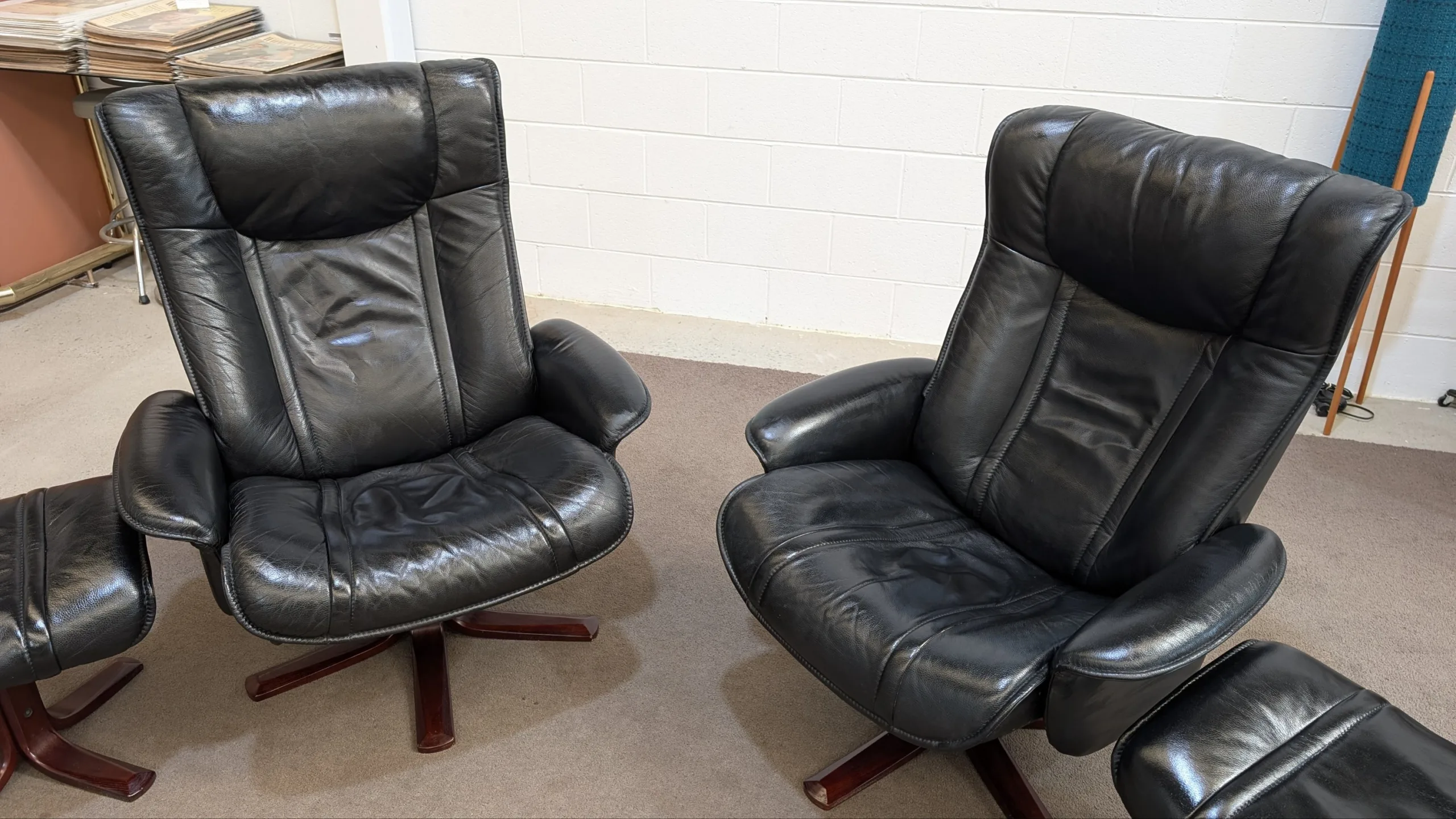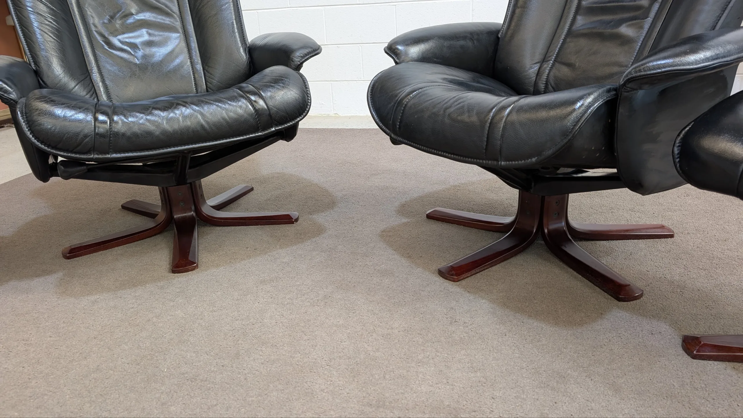 Leather Recliner and Footstool by IMG in good solid condition. Everything works as it should. Quality build as expected from the maker. Recliner works easily. Great colour. Leather cleaned and conditioned. Price per unit, two available.