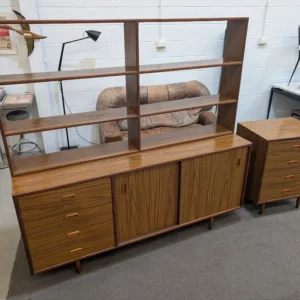 Retro bar by MACROB in excellent condition. Looks all original with maker's decal. Storage area, multiple uses. Good for perhaps TV stand. Iconic design. Overall presents well.