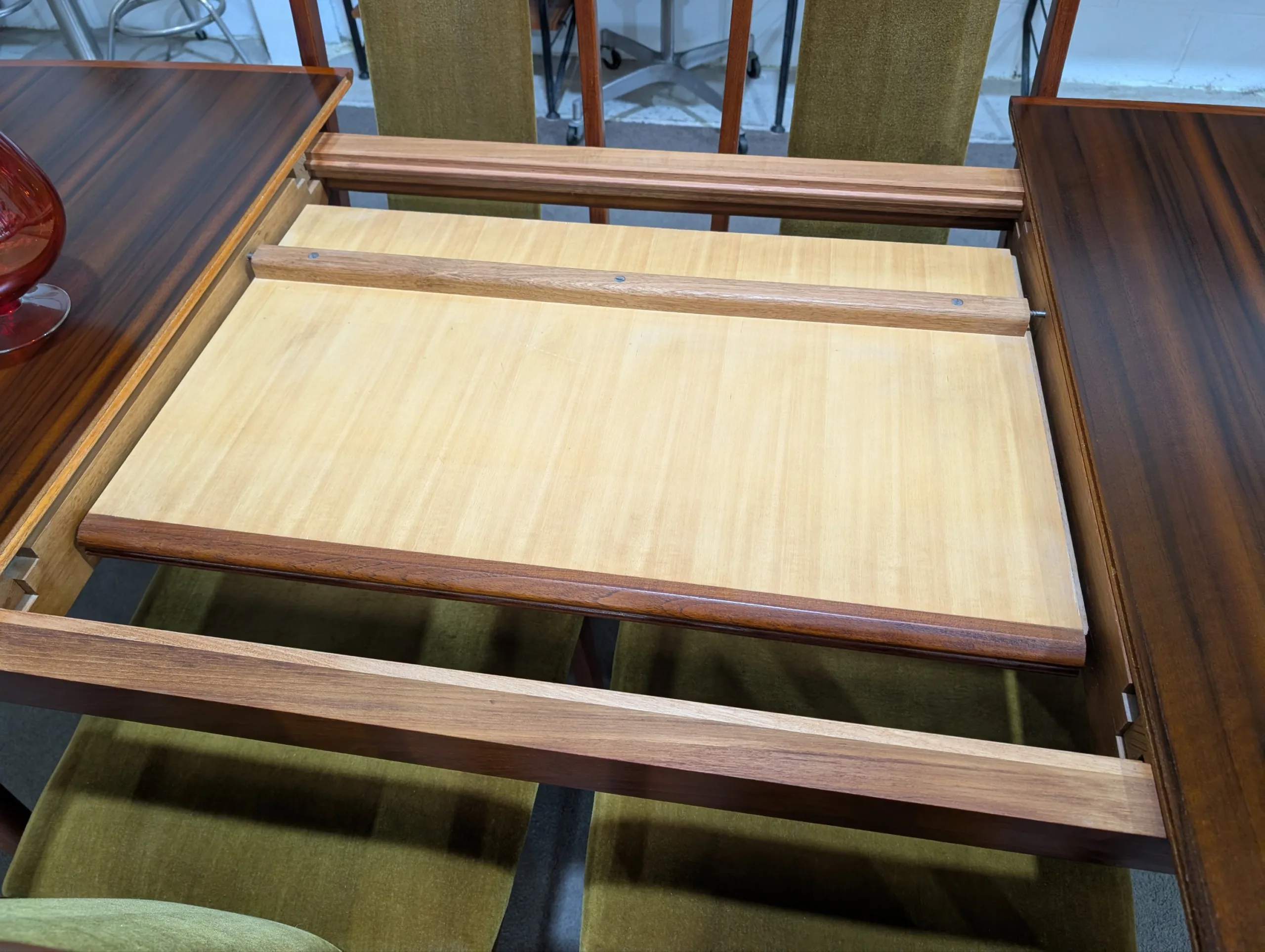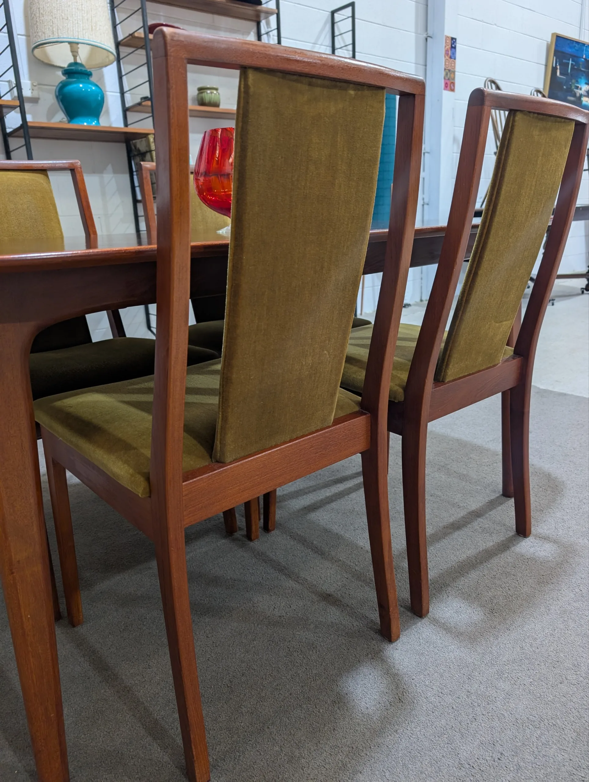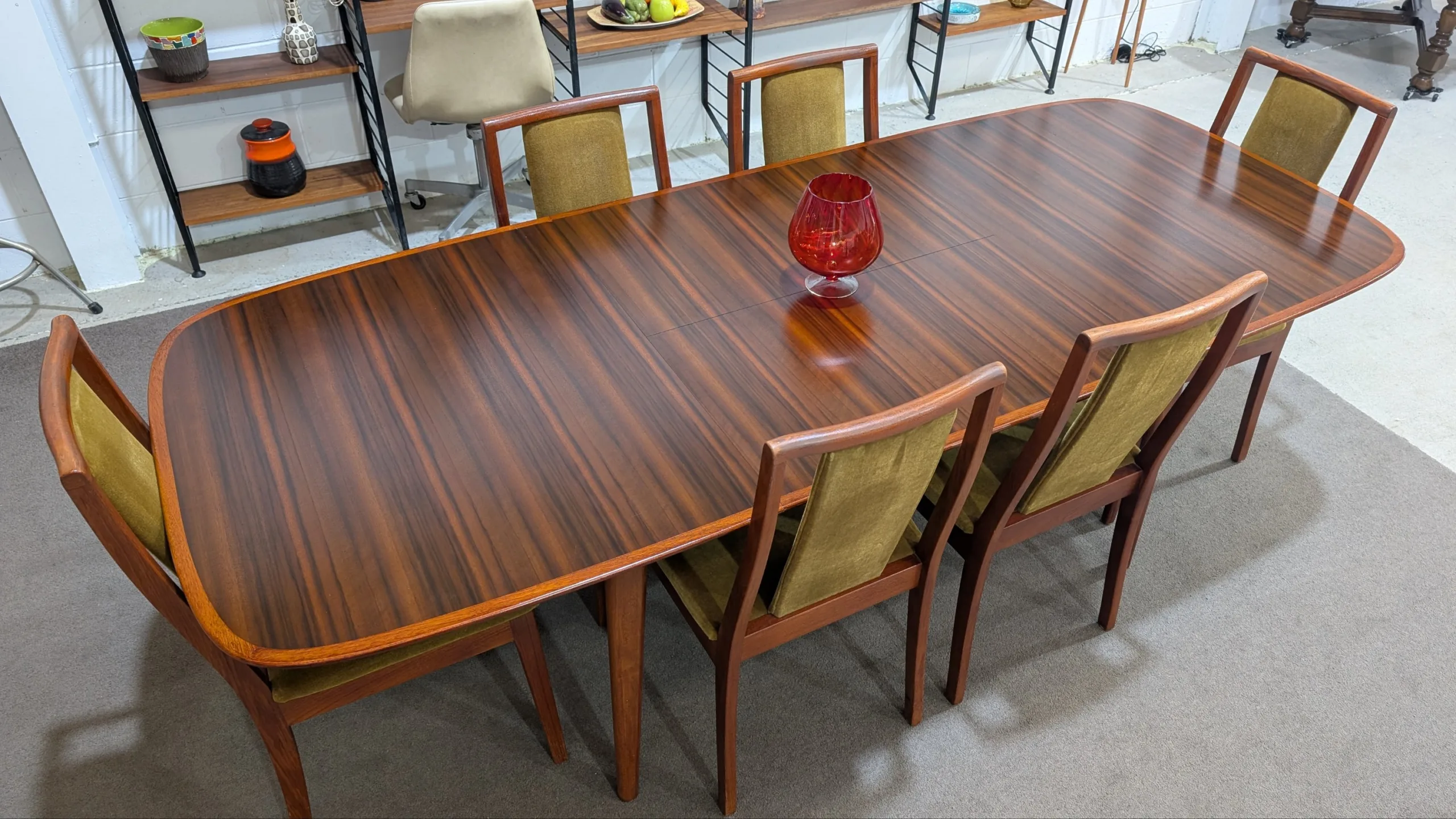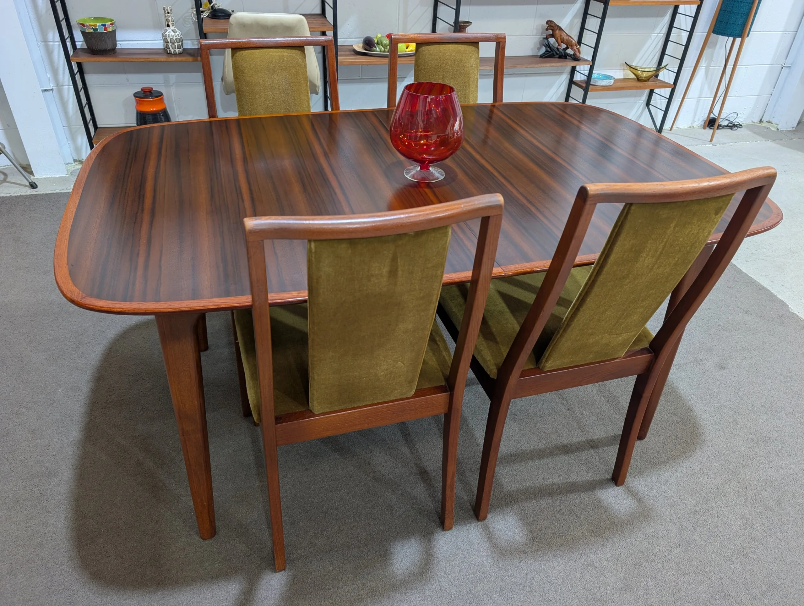 Retro extension table and chairs by NOBLETT in excellent condition. Extension system works easily, all joins firm. Coverings in top shape. Great quality as expected from the maker. Fantastic example from the period. All seven pieces included in the listing.