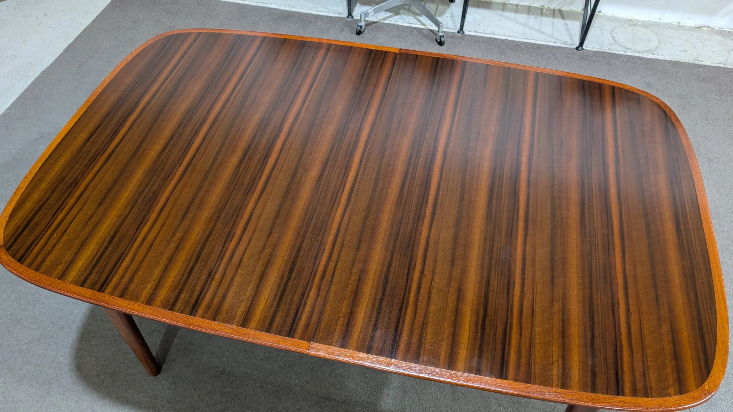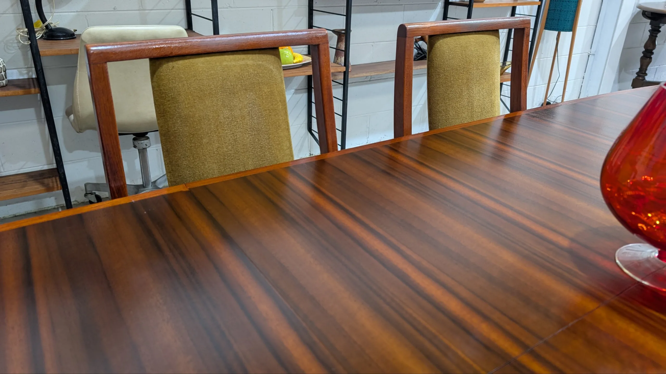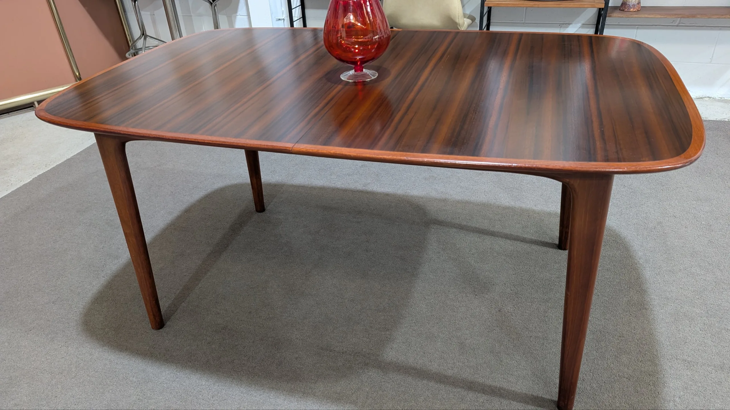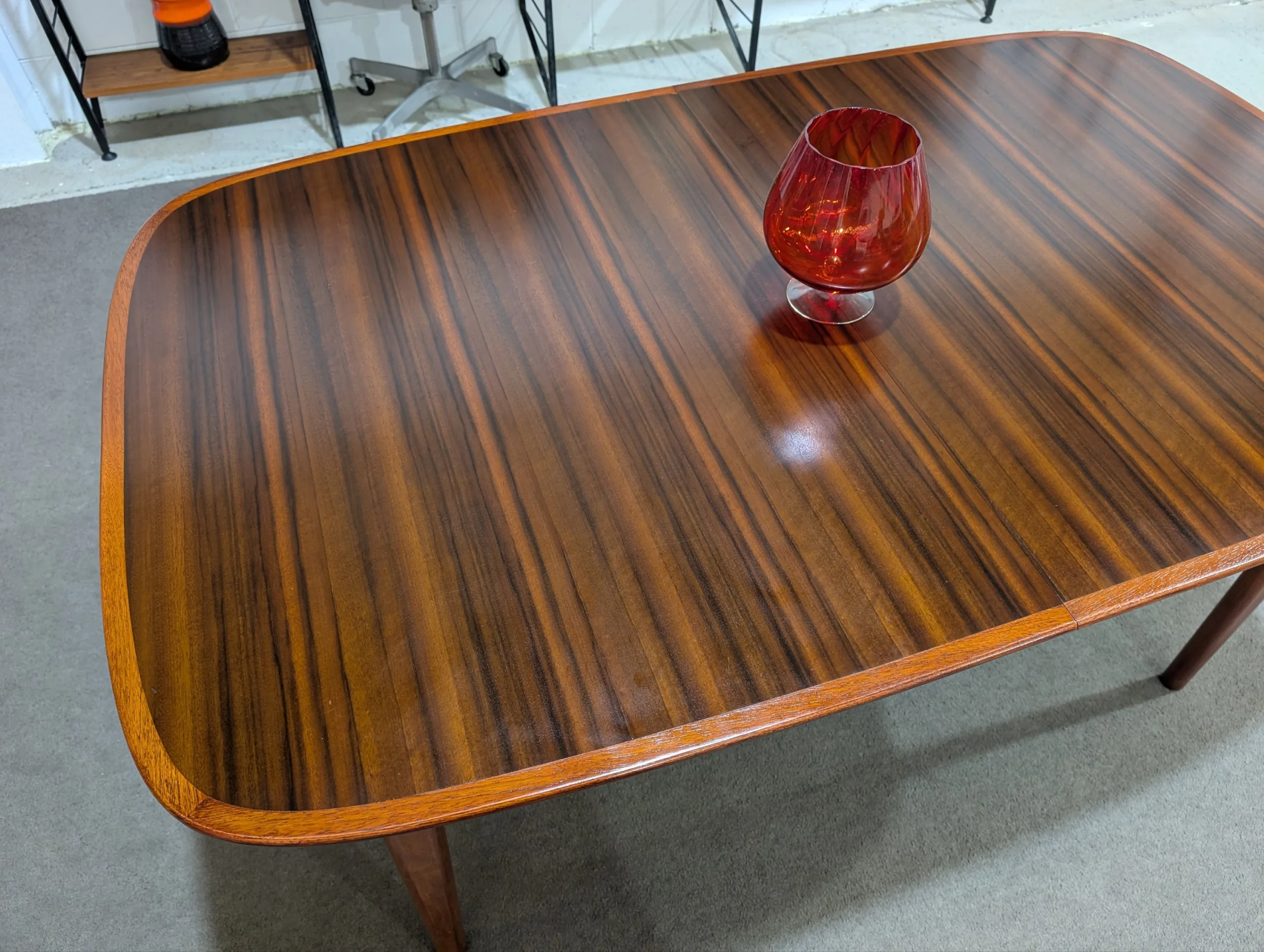 Retro extension table and chairs by NOBLETT in excellent condition. Extension system works easily, all joins firm. Coverings in top shape. Great quality as expected from the maker. Fantastic example from the period. All seven pieces included in the listing.