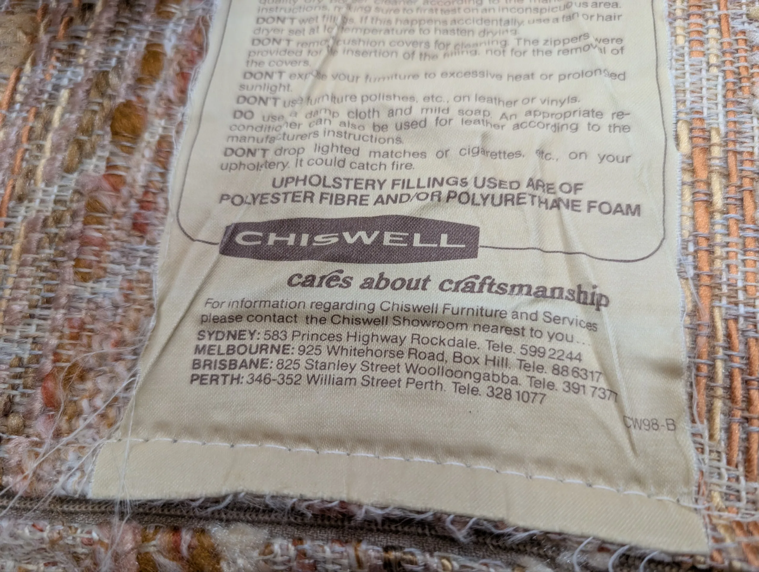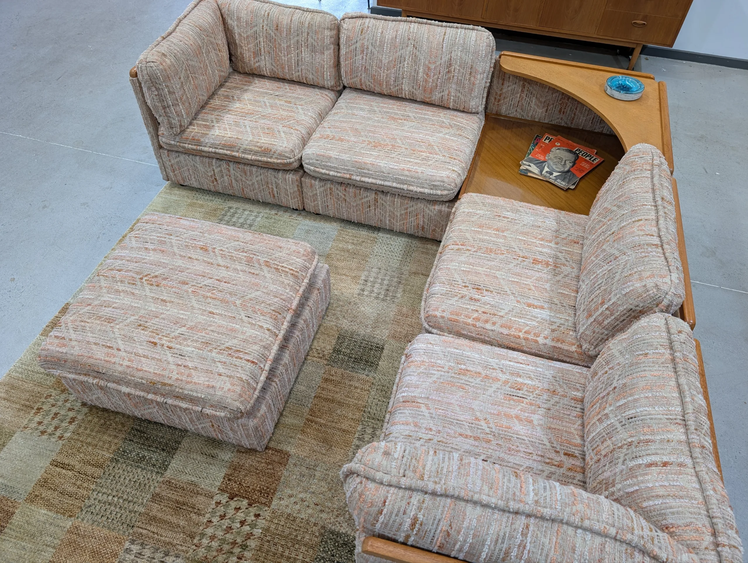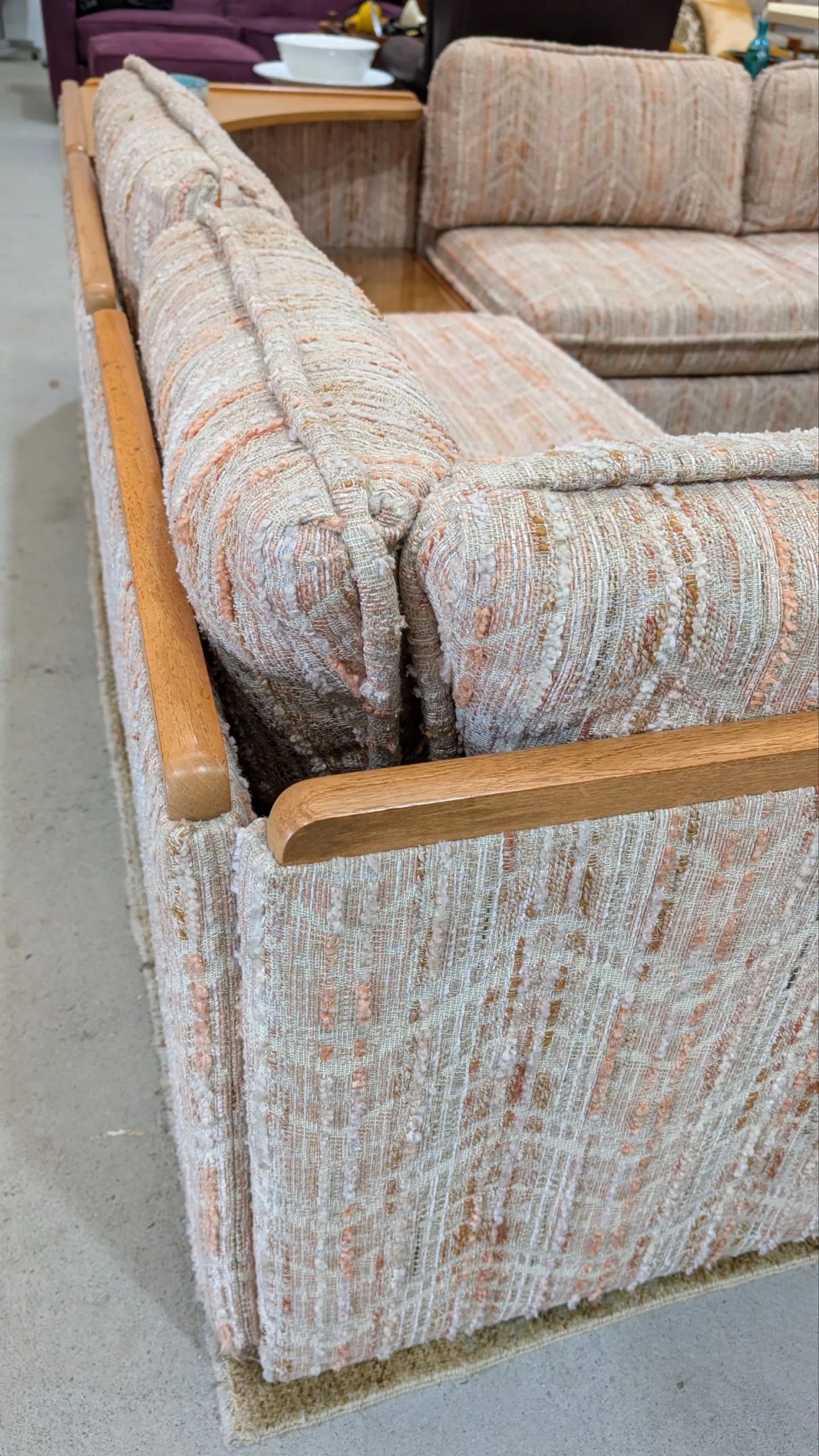 Retro six piece modular by Chiswell in excellent condition. Removable cushions, tags attached, three corners. Attractive timber highlights. Flexibility in arranging. Overall presents well. A great example from the period.