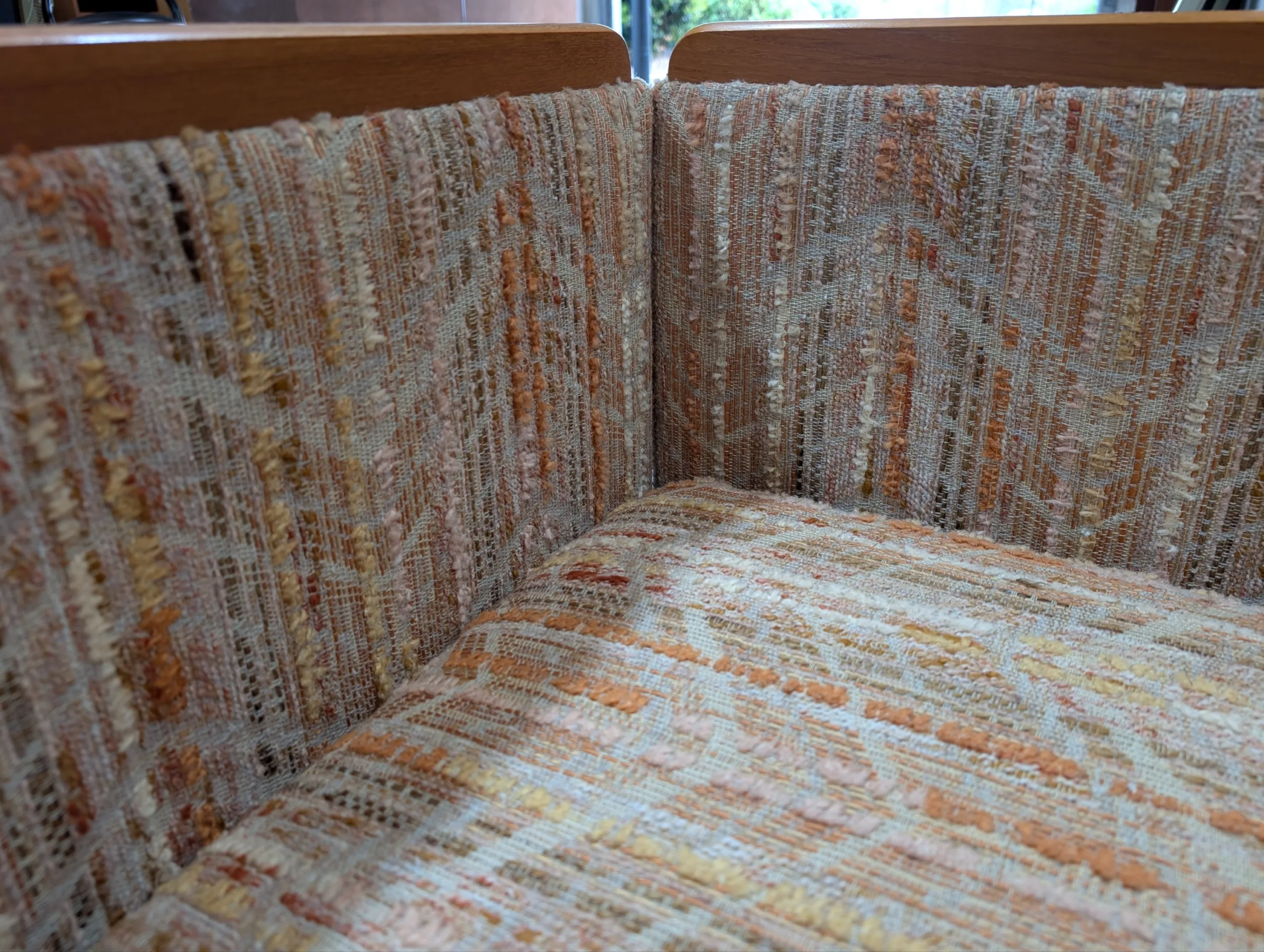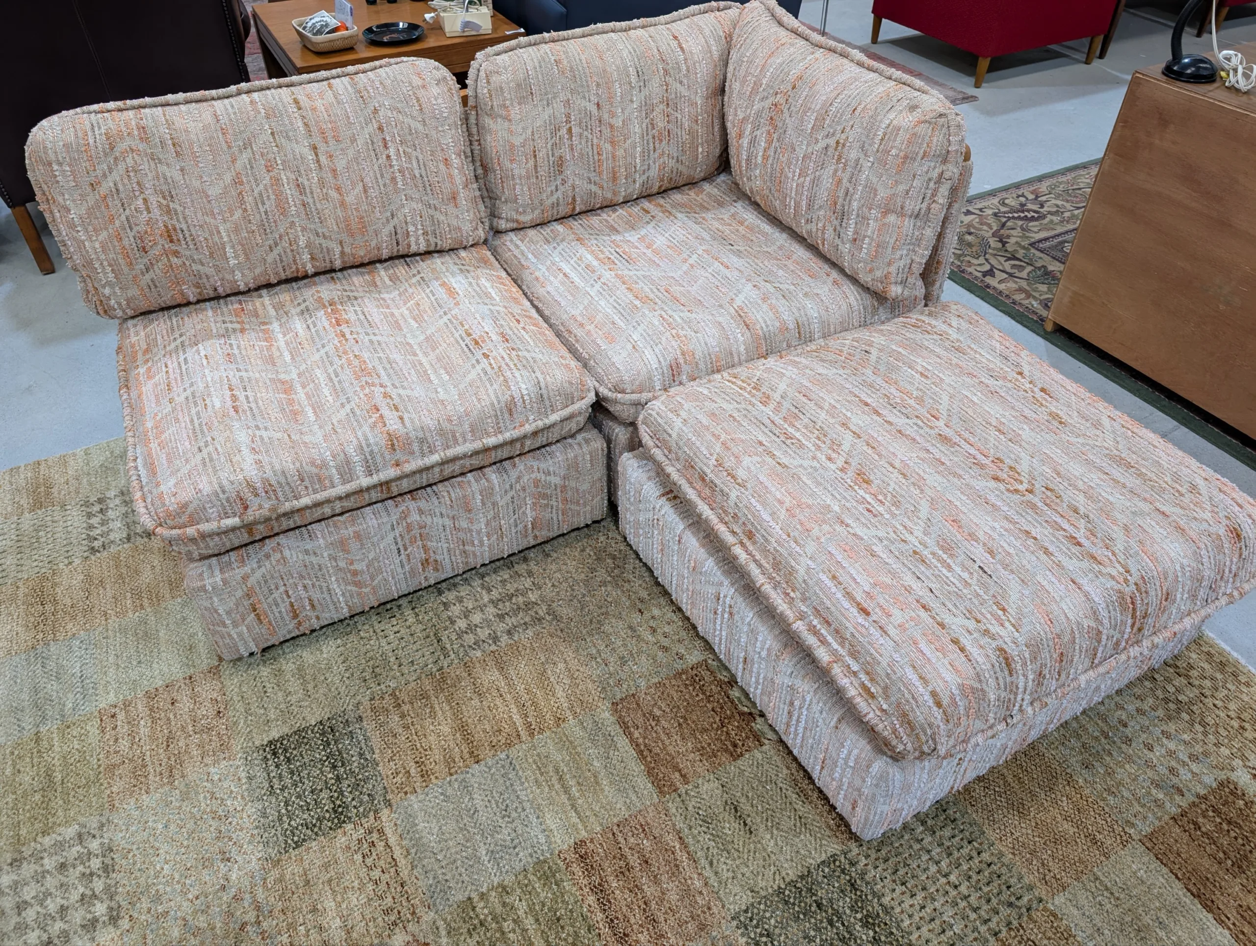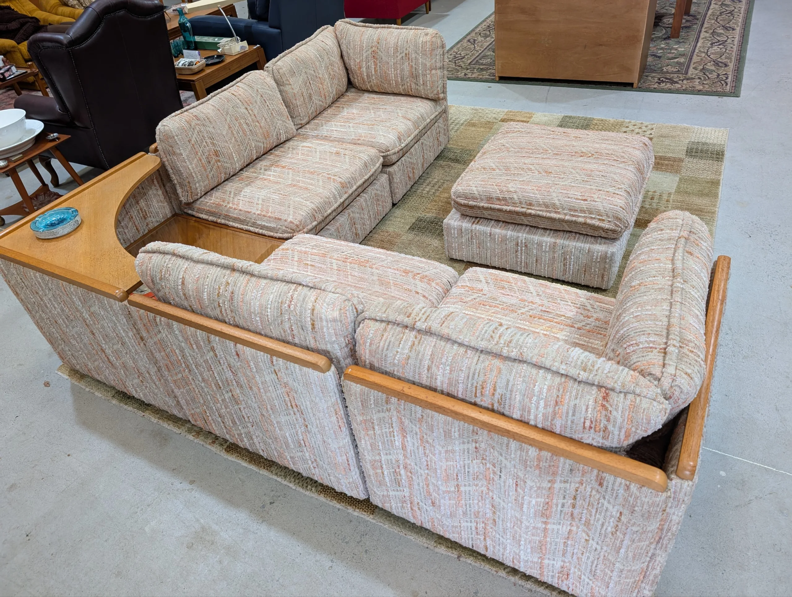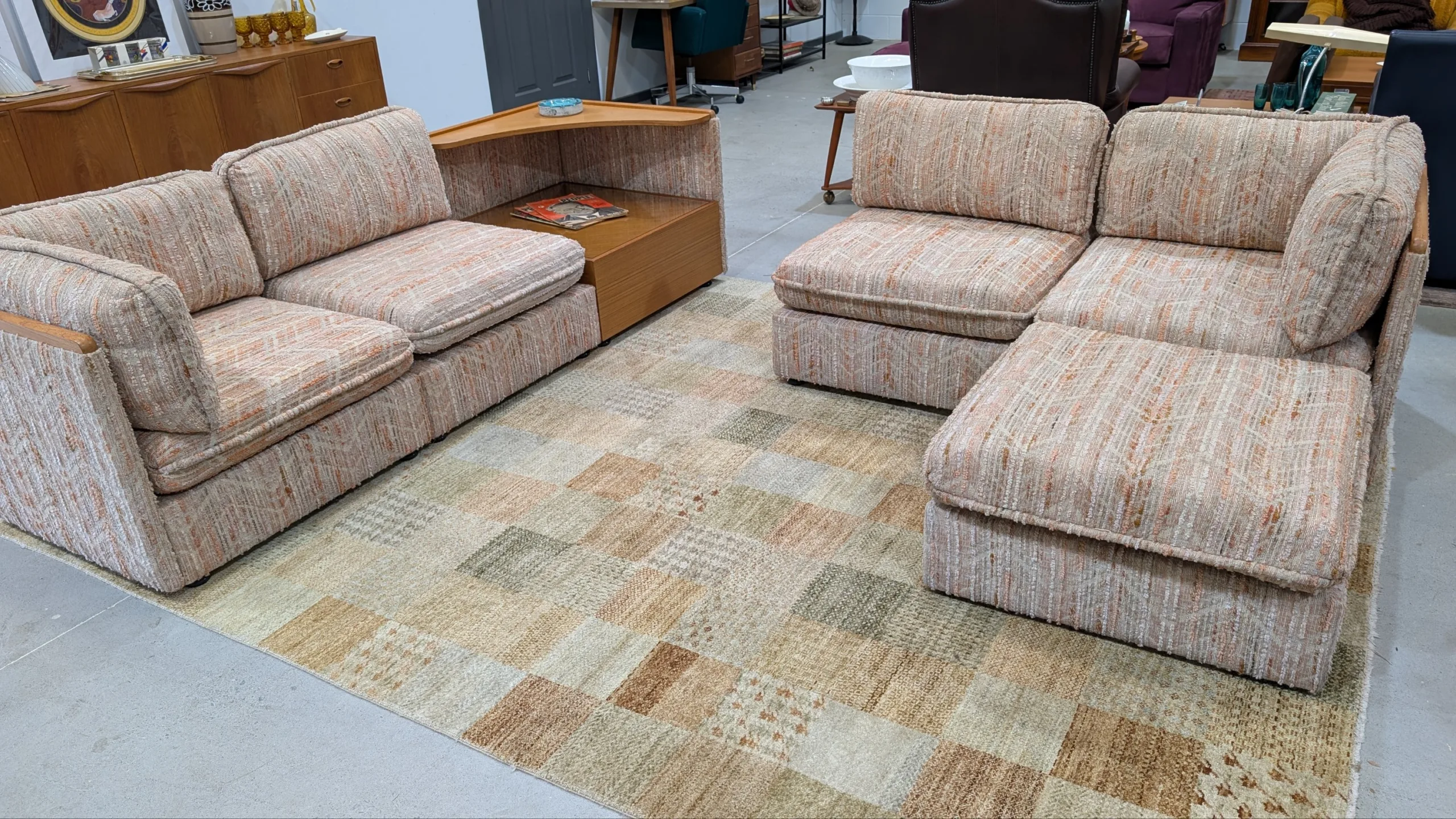Retro six piece modular by Chiswell in excellent condition. Removable cushions, tags attached, three corners. Attractive timber highlights. Flexibility in arranging. Overall presents well. A great example from the period.
