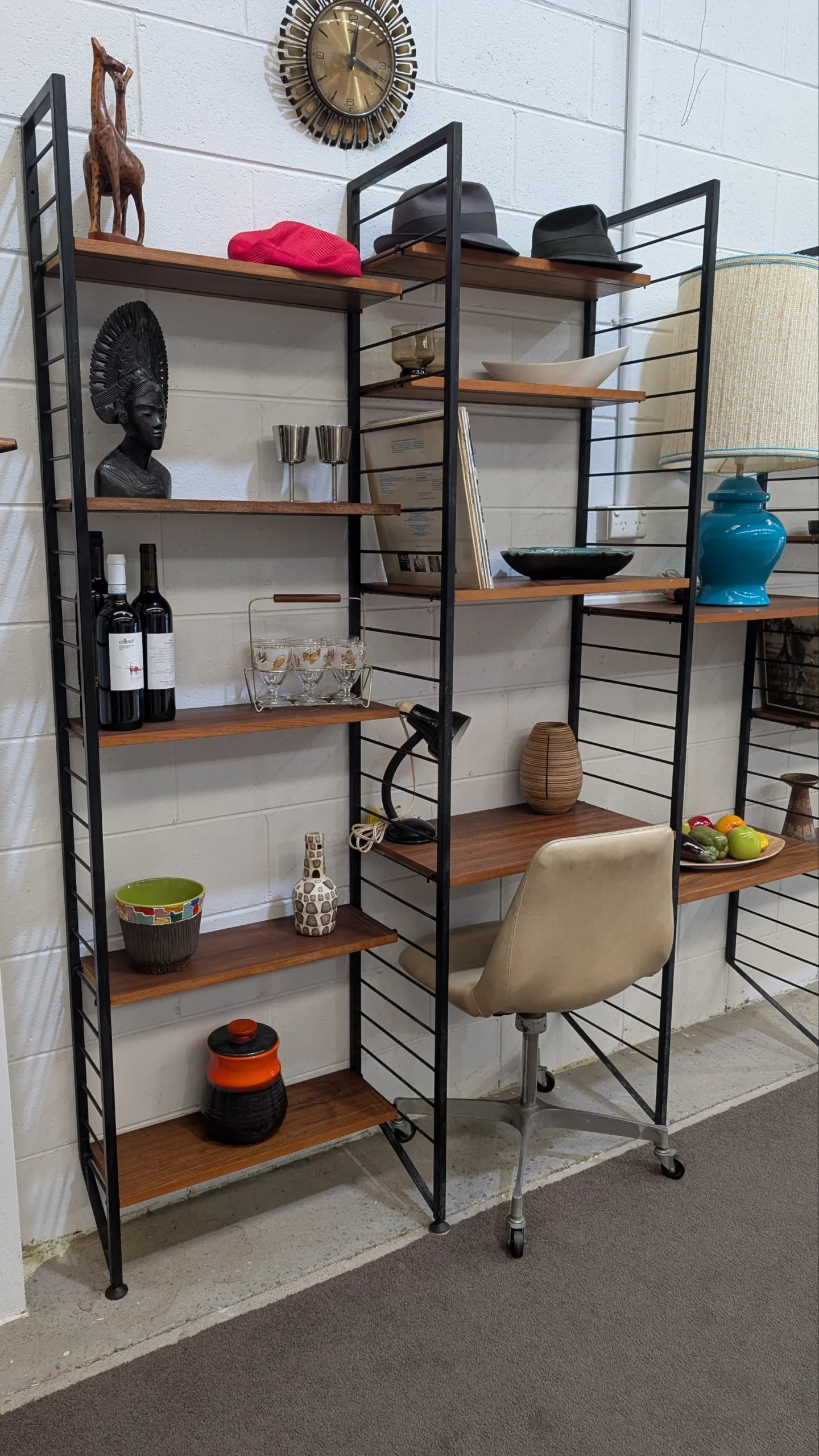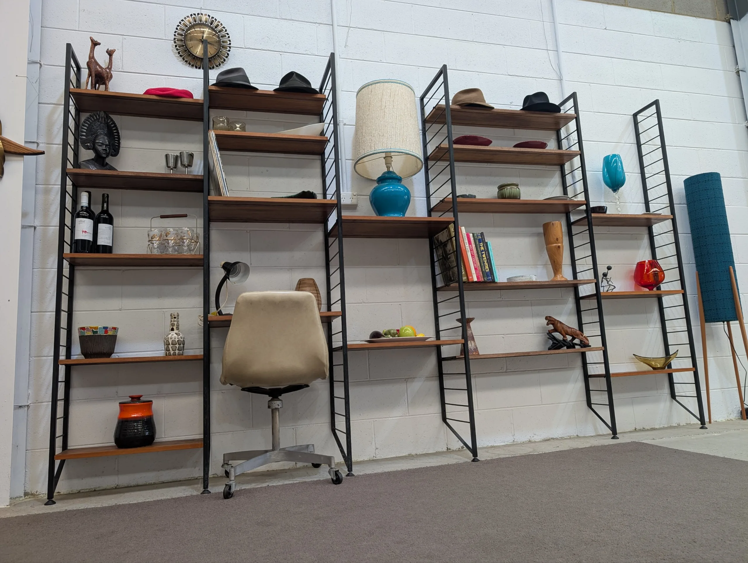 Retro Shelving System by Ladderax in good solid condition. Large five bay system. Easy to assemble, sturdy. Sought after example from the period.