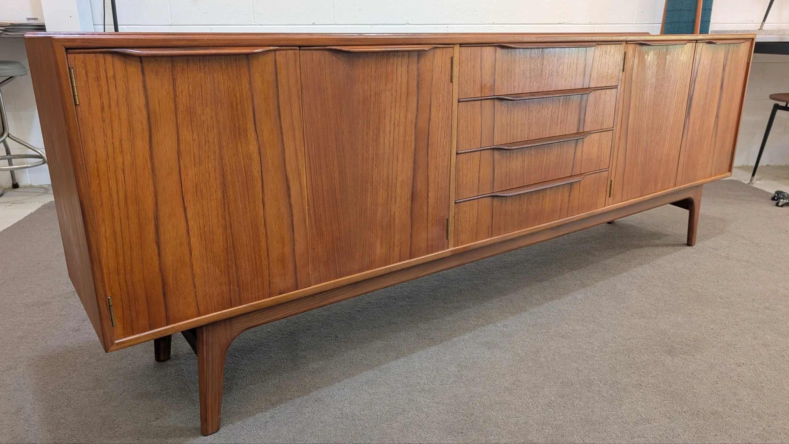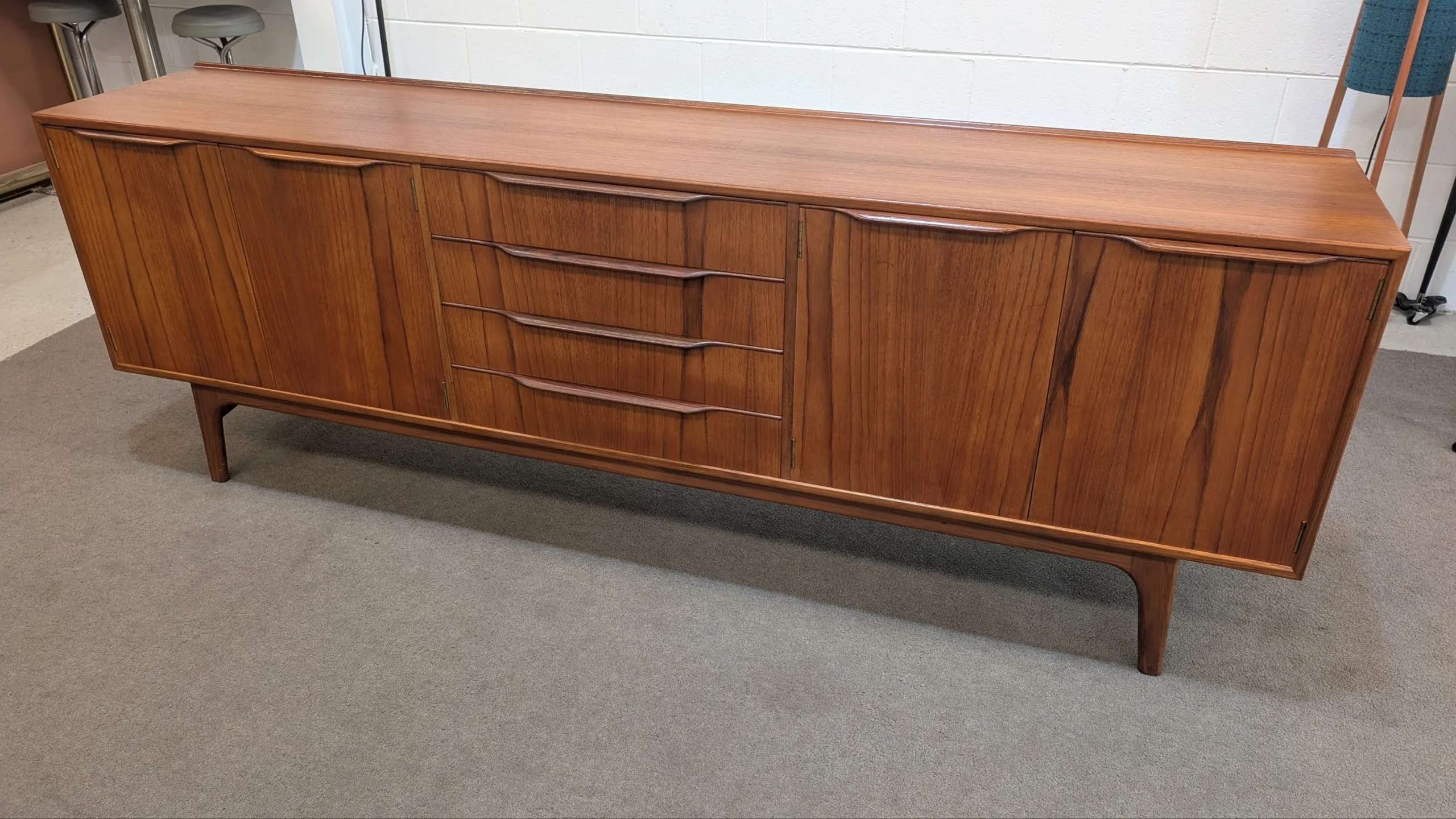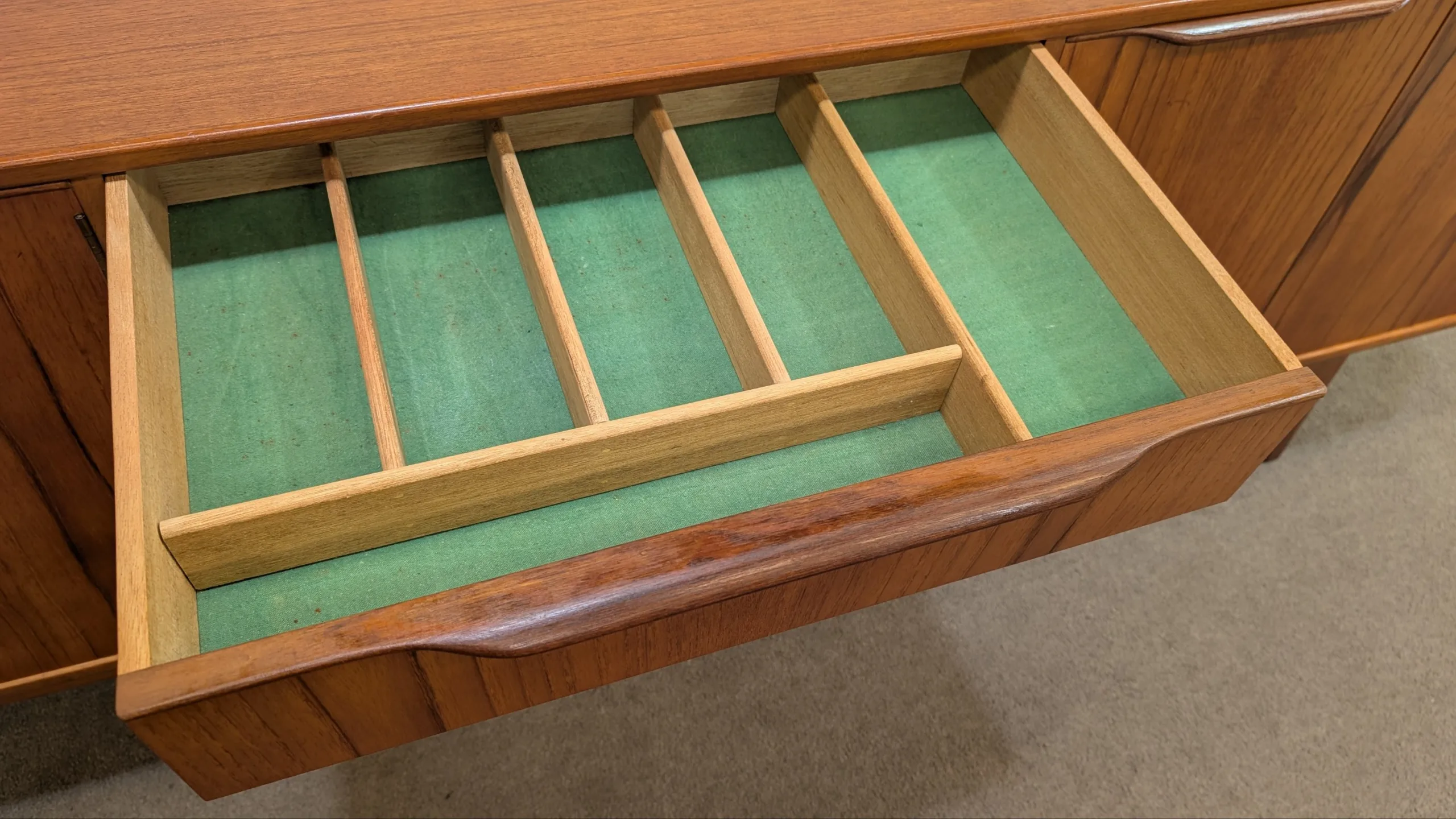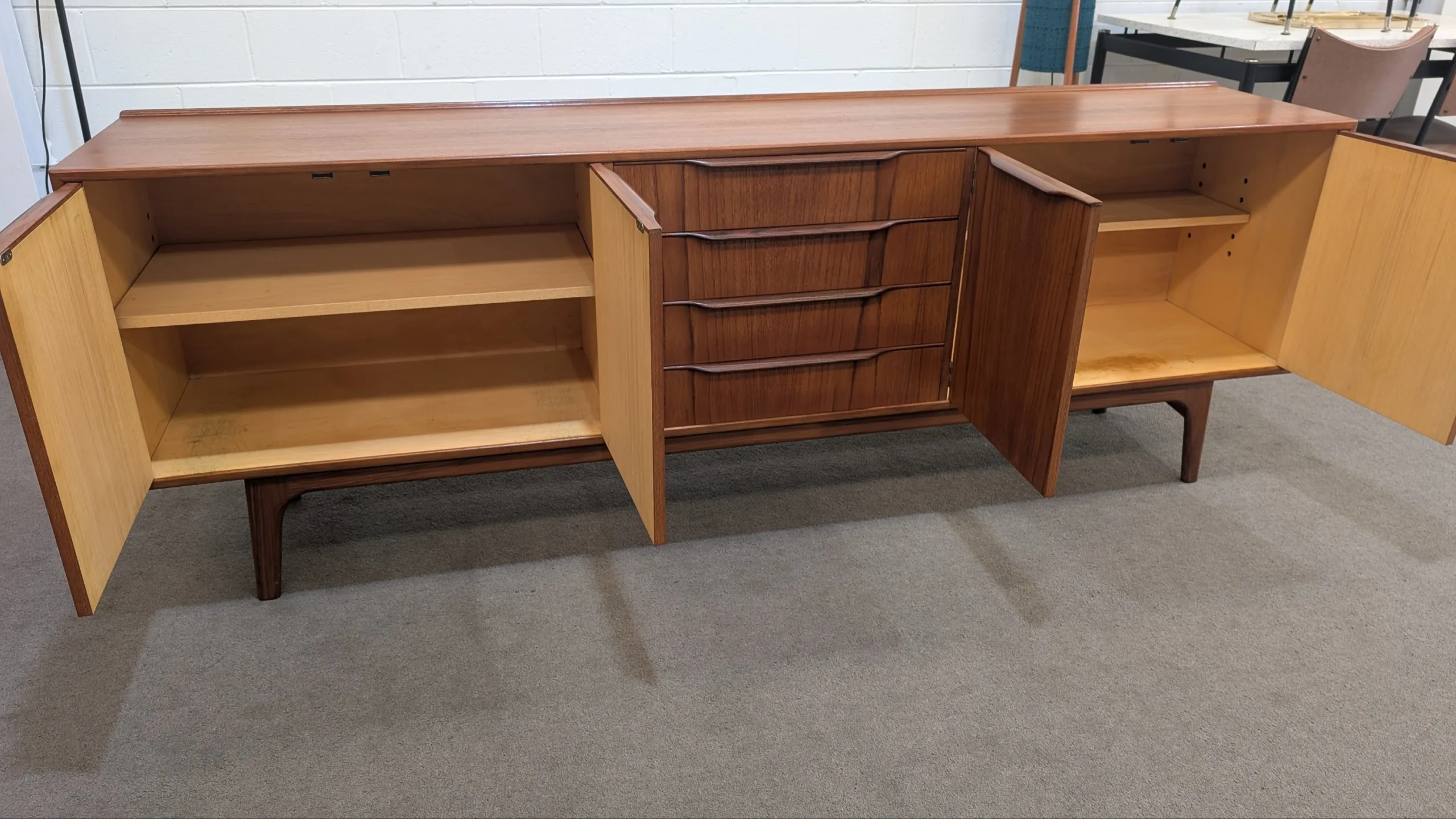 Retro Sideboard by Noblett in excellent condition. Everything opens and closes as it should. Sturdy well made unit. Sought after large size. Adjustable and removable shelves, felt lined cutlery drawer. Looks all original. Overall presents well.