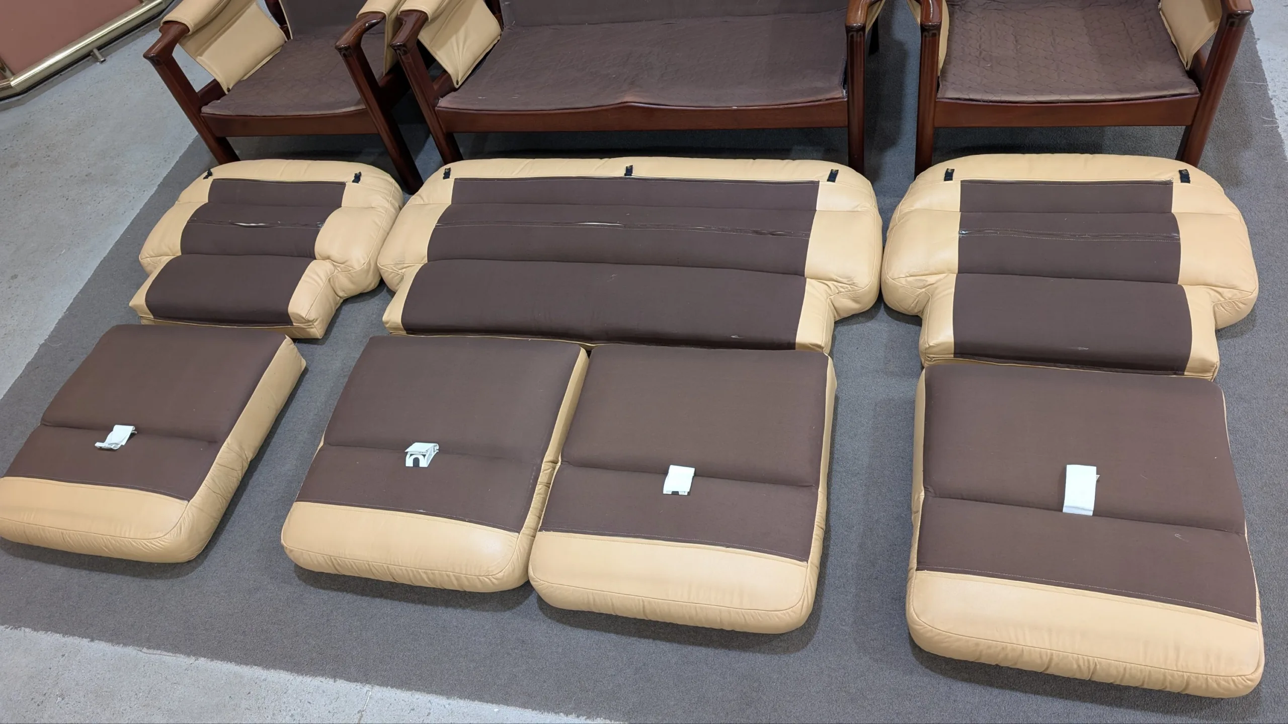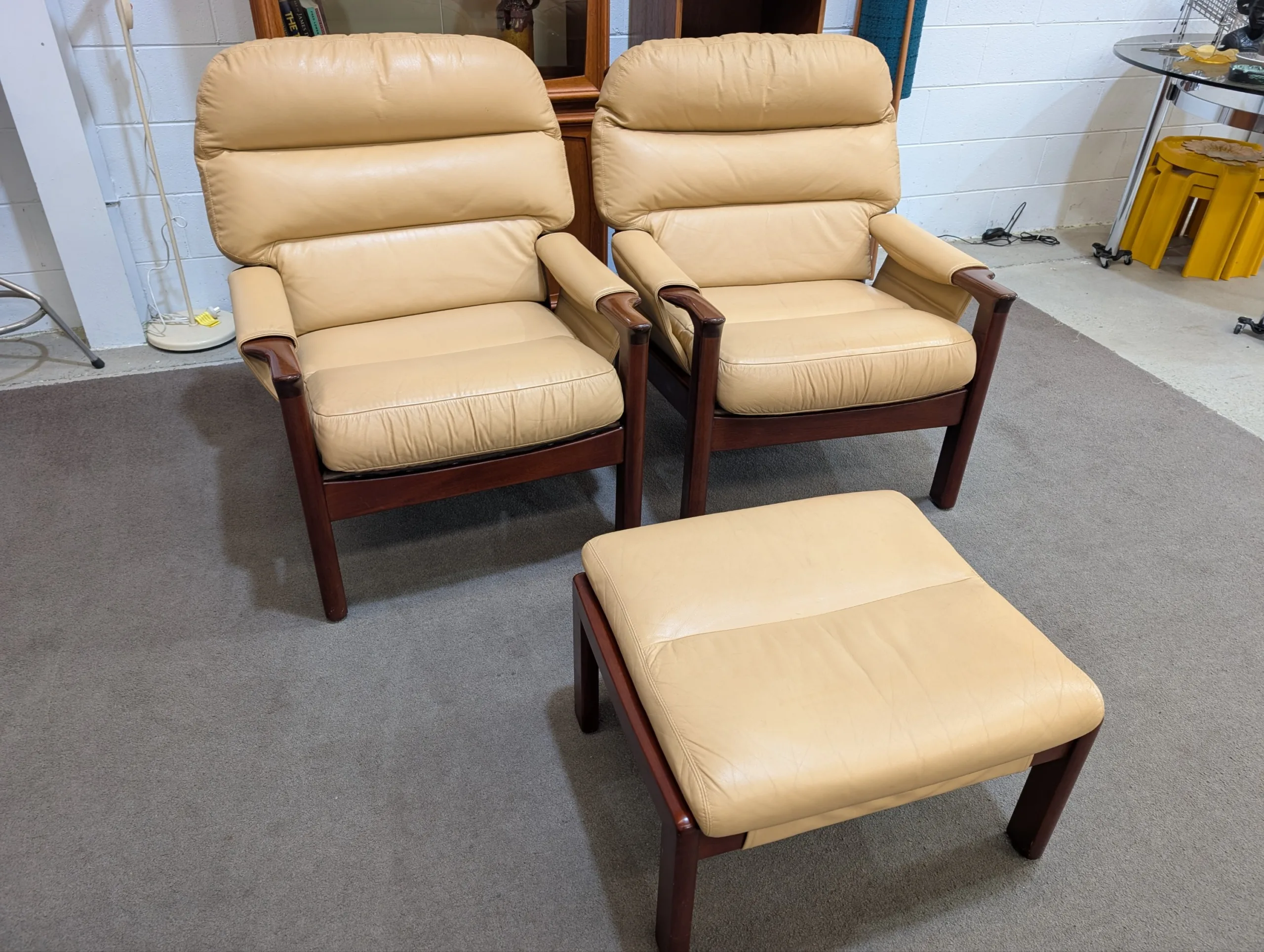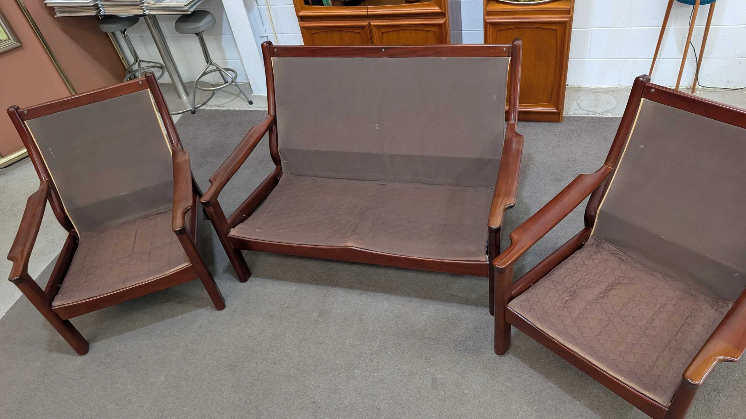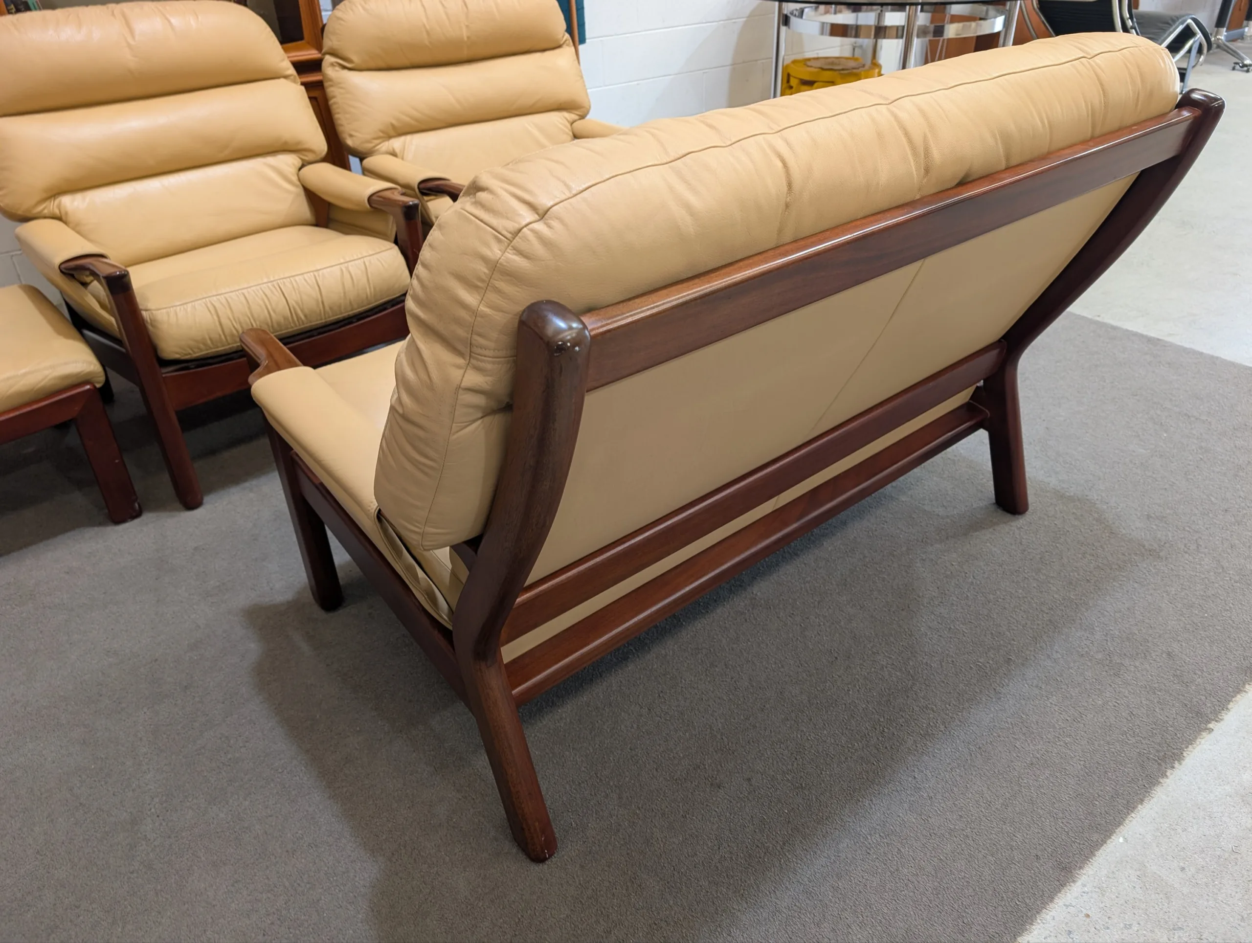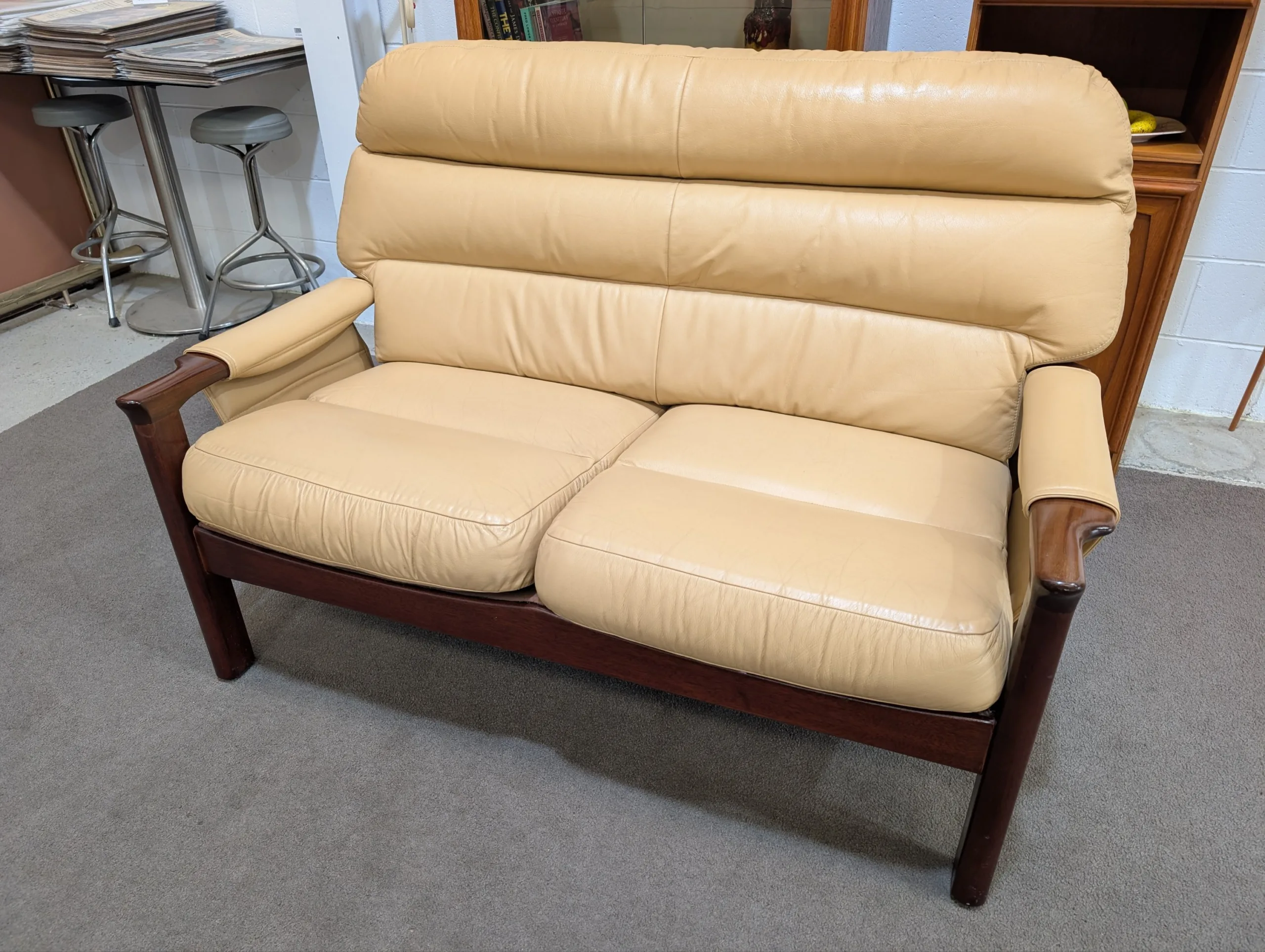 Retro TESSA Wellington lounge suite in excellent condition. Looks like an early vintage set, very hard to find in this condition. Great colour scheme. Covering in good shape, firm seating support. Solid timber frames are tight. Overall in good condition. Fabric steam cleaned and leather condioned. All four pieces included in listing.